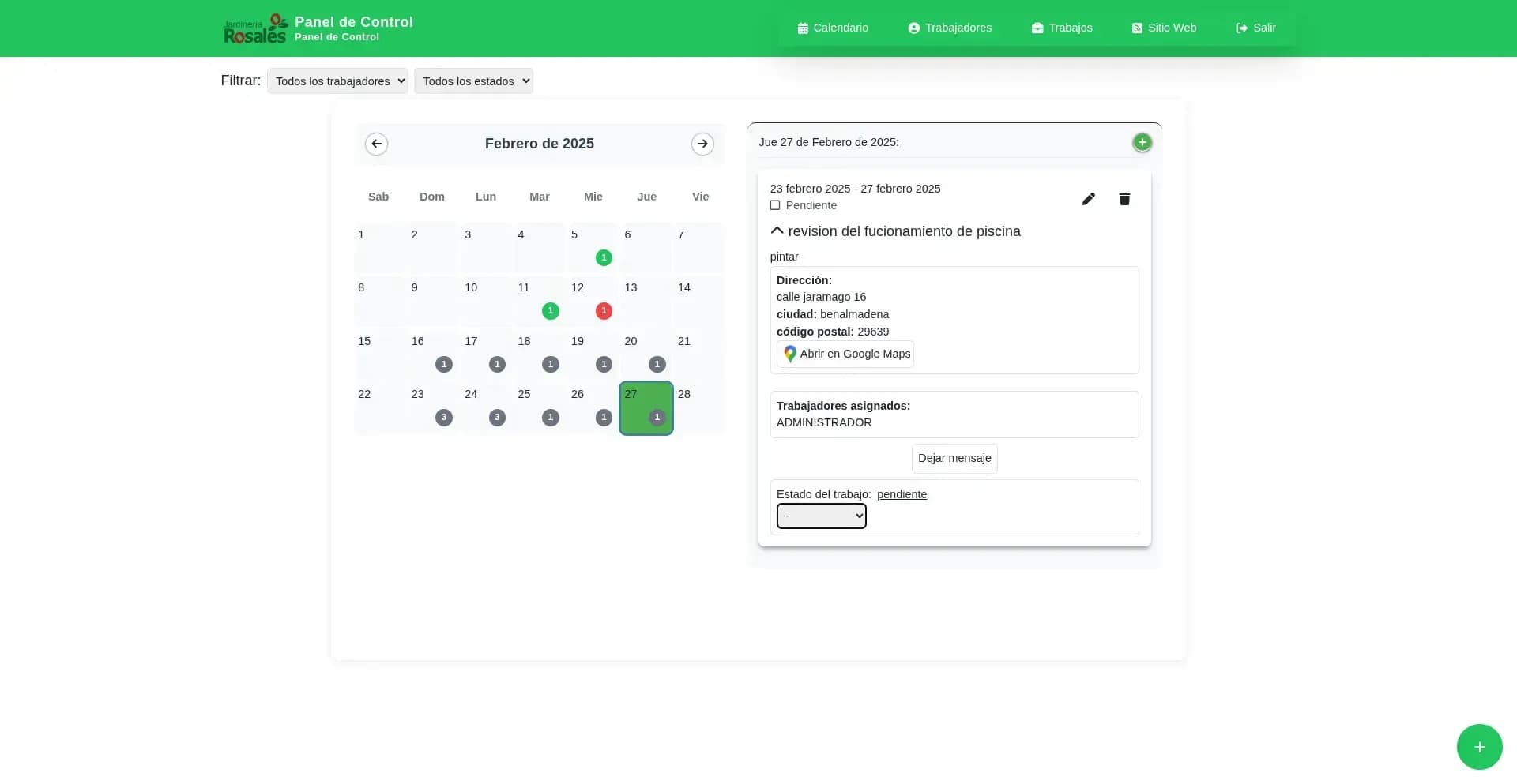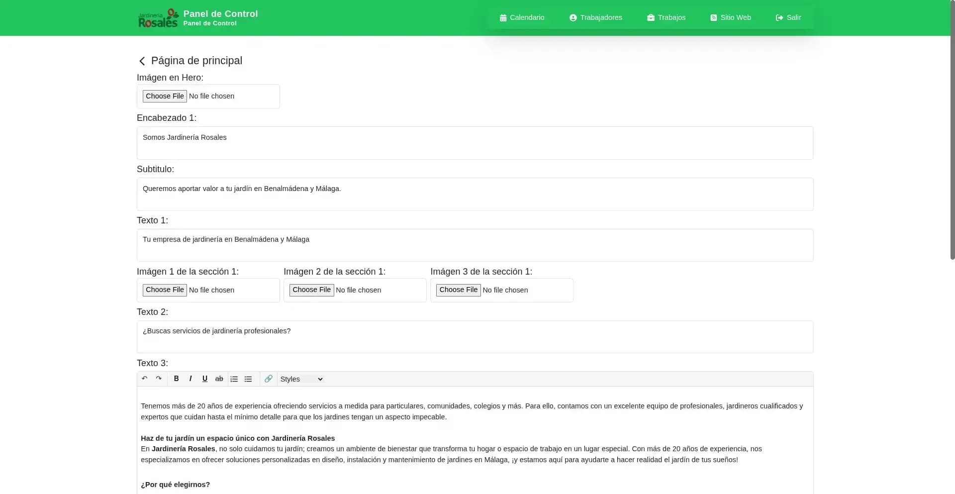 La empresa de jardinería Jardinería Rosales necesitaba tener un alcance mayor a su localidad, los clientes solían ser únicamente personas y empresas de Benalmádena. Adicionalmente necesitaban un sistema para agendar sus trabajos y asignarlos a sus trabajadores.