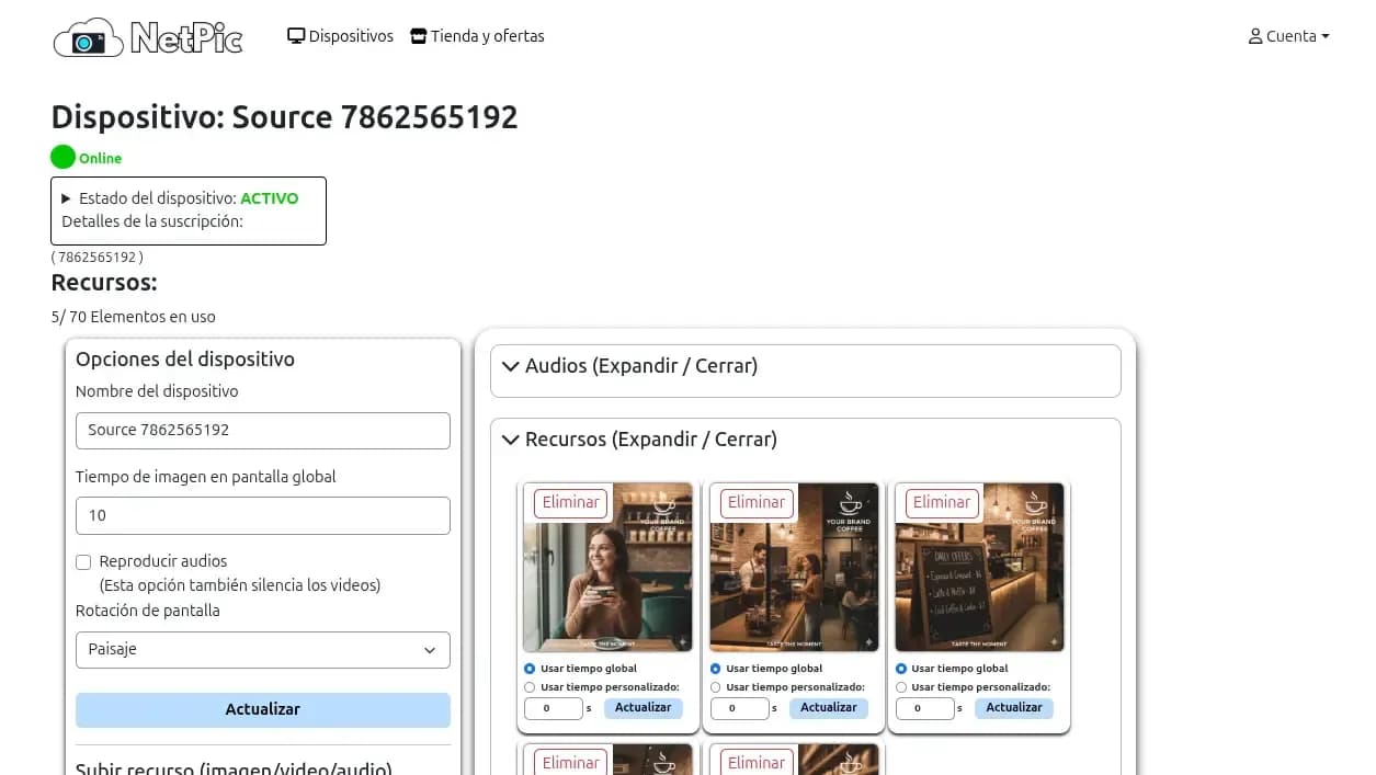 NetPic les permite gestionar contenido multimedia (vídeo, imágenes, audios) en sus pantallas a través de una plataforma centralizada utilizando los dispositivos NetPic.